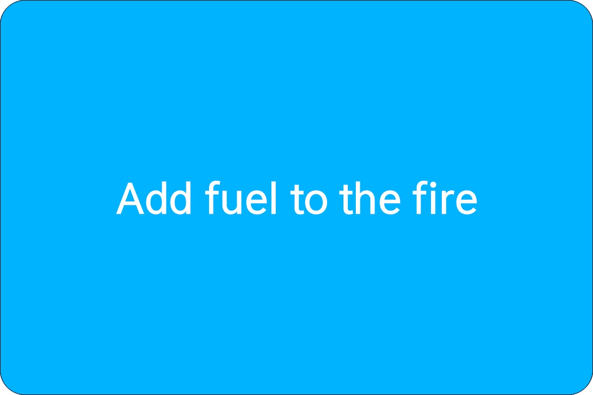 'add fuel to the fire'는 말 그대로 "불에 연료를 더하다"라는 뜻이지만, 비유적으로는 "상황을 더 악화시키다" 또는 "이미 나쁜 상황을 더 나쁘게 만들다"를 의미합니다. 우리말로는 "불 난 집에 부채질하다"와 유사한 표현입니다.